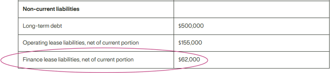 Always distinguish between finance leases and other lease liabilities when reviewing or categorising balance sheet figures.